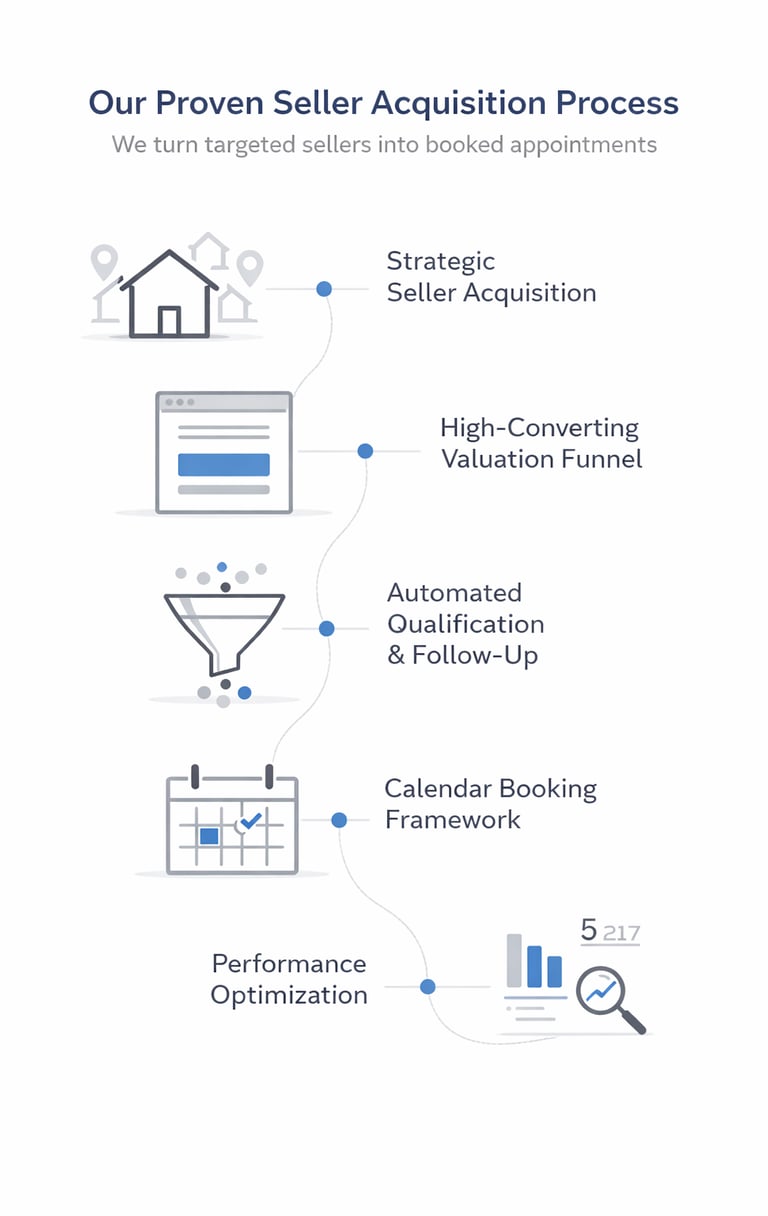 A simple system combining targeted ads and automated follow-up to bring motivated sellers directly to your calendar.